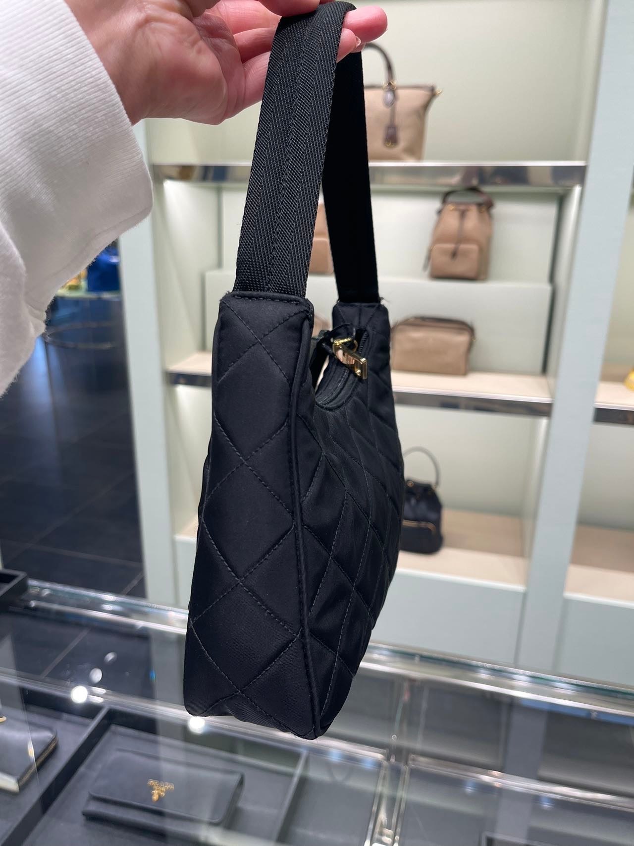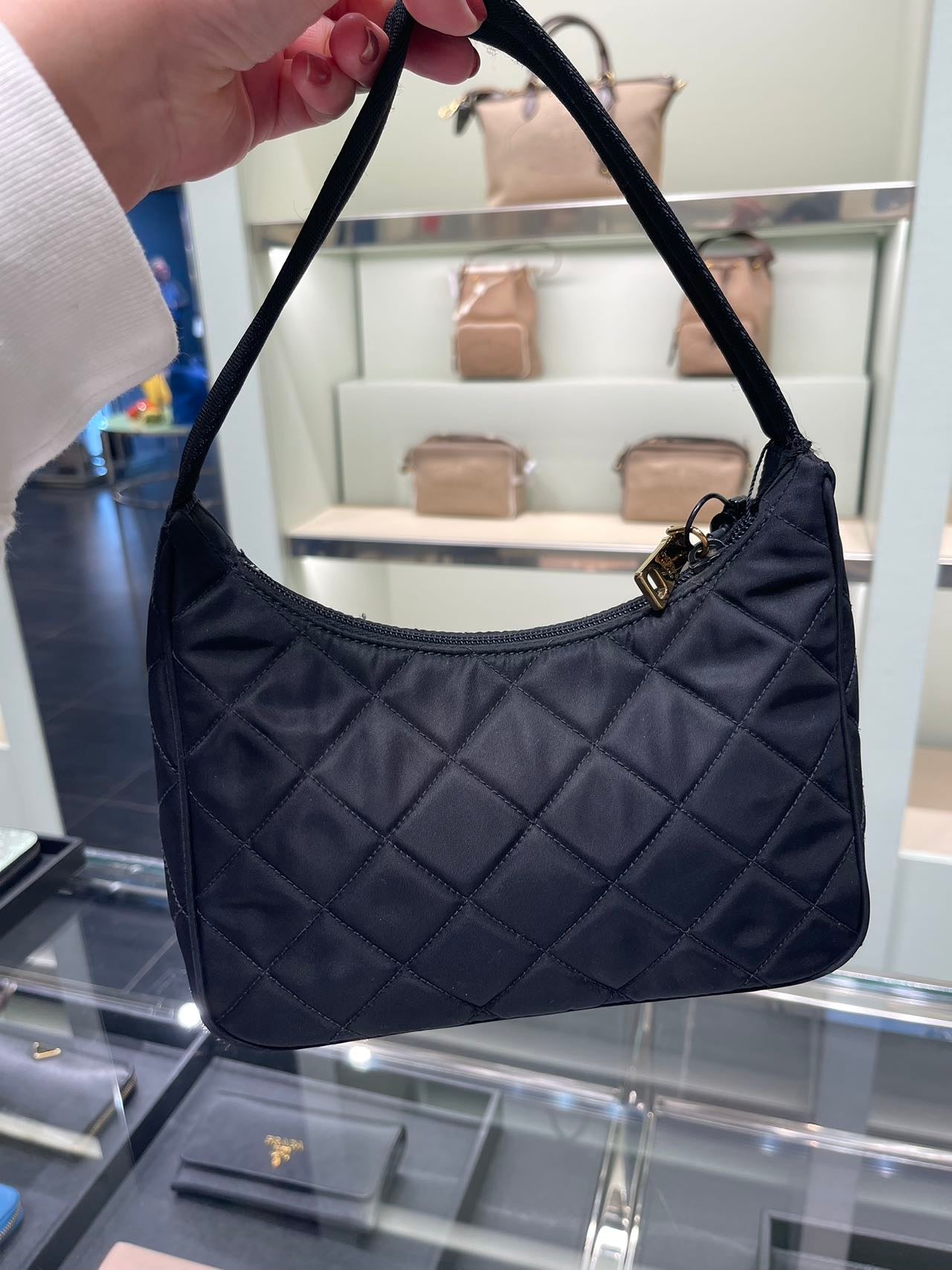 Prada hobo bag普拉達尼龍菱格紋腋下包